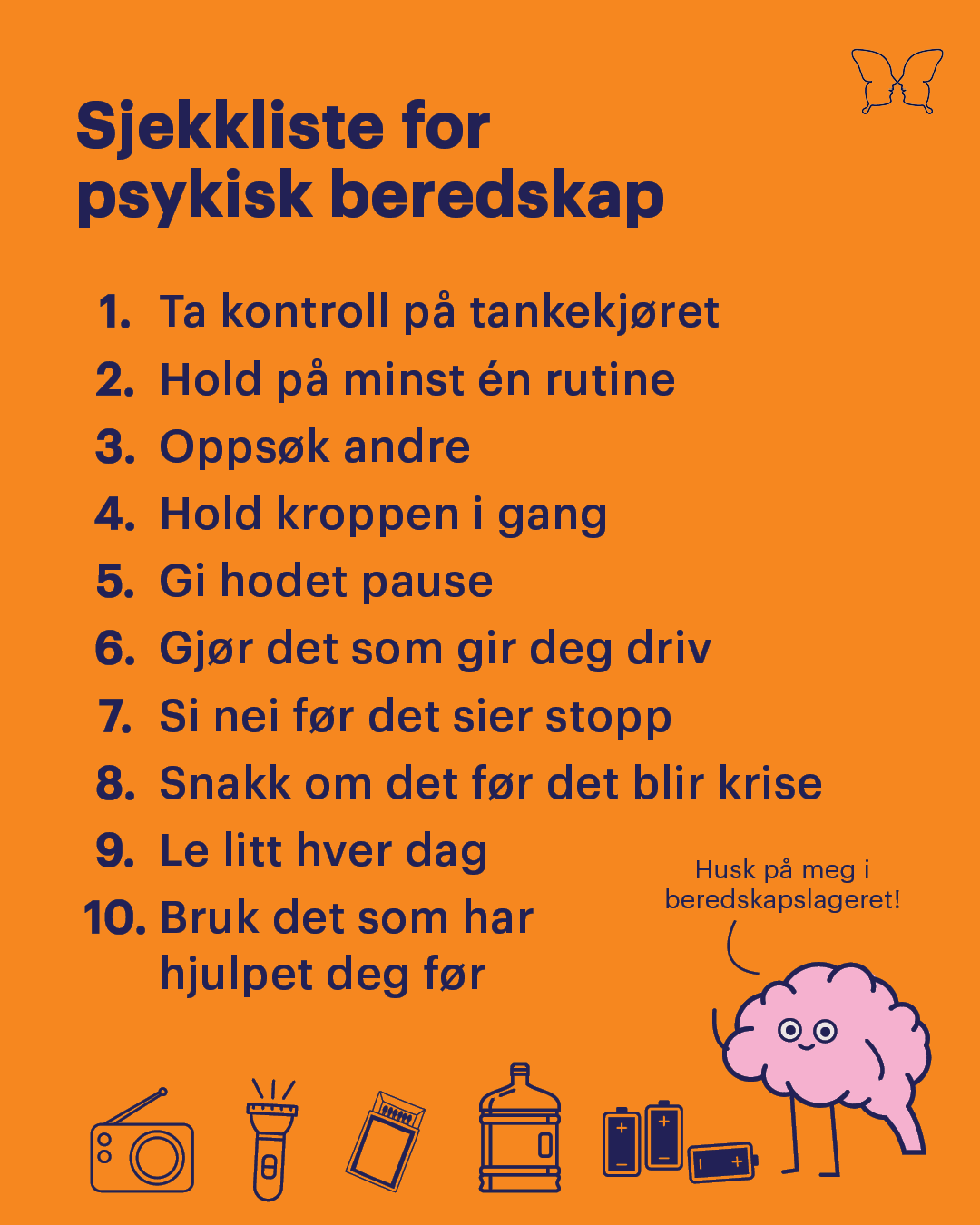 Sjekkliste for psykisk beredskap på jobb - til trykk, skjerm og SoMe!